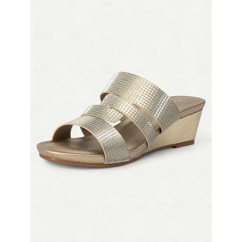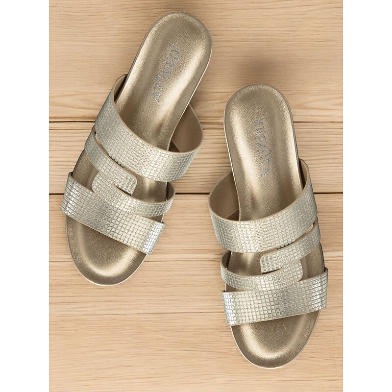 More information about Women's Metallic Slide Sandals with Textured Straps, Open-Toe Flat Shoes for Casual Summer Outings and Beach Wear