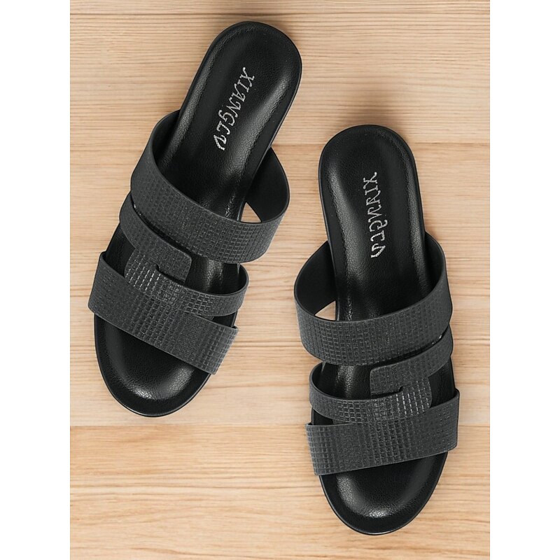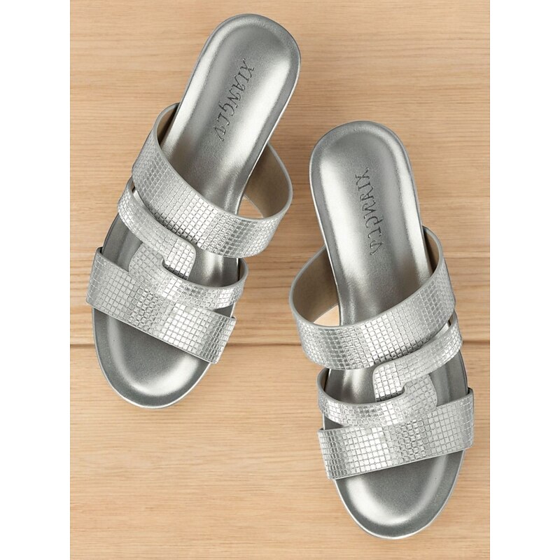 Women's Metallic Slide Sandals with Textured Straps, Open-Toe Flat Shoes for Casual Summer Outings and Beach Wear 27