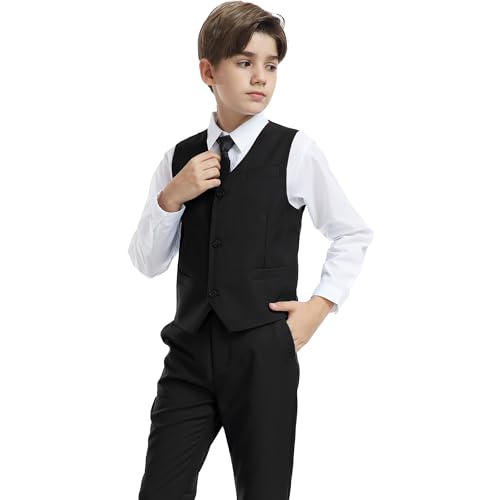 HOT ! Boys' Vest Slim Formal Suit Vest for Wedding Homecoming with Pockets Adjustable Back Strap, Size 2-20 Years