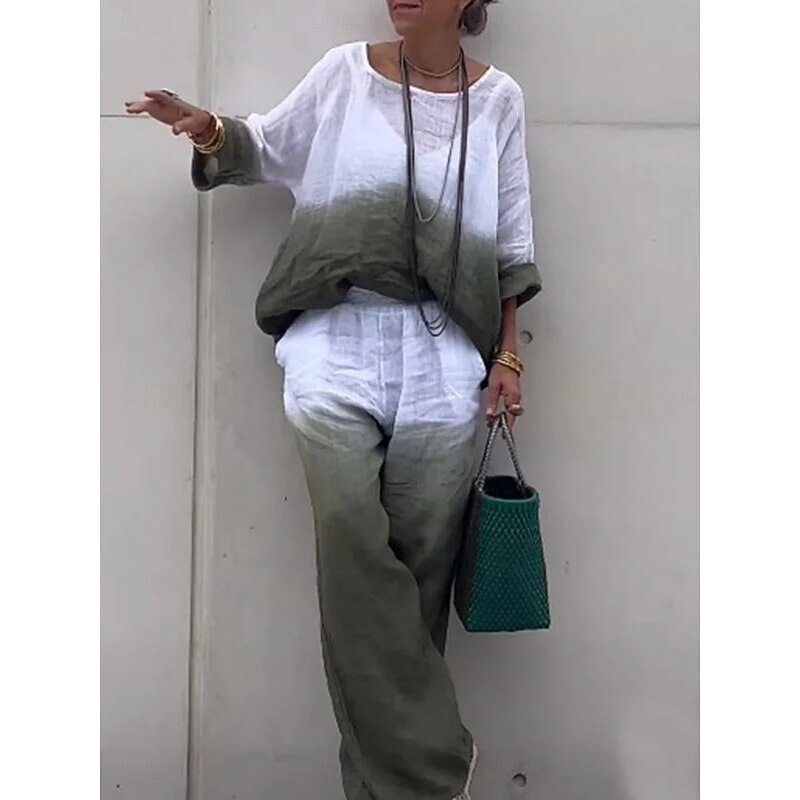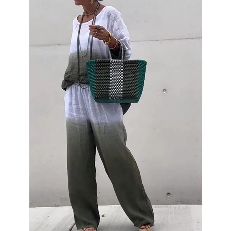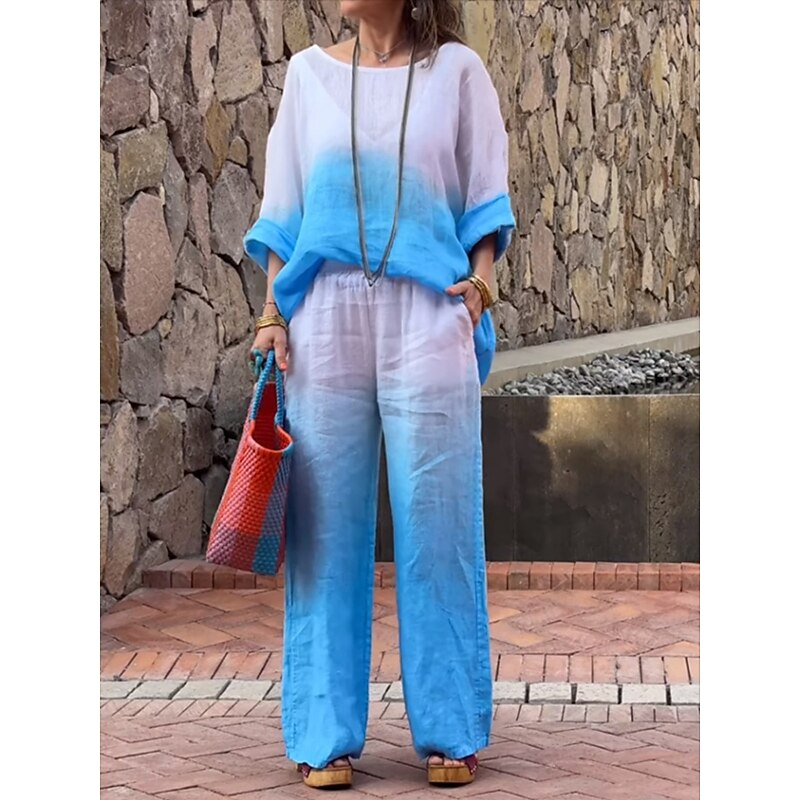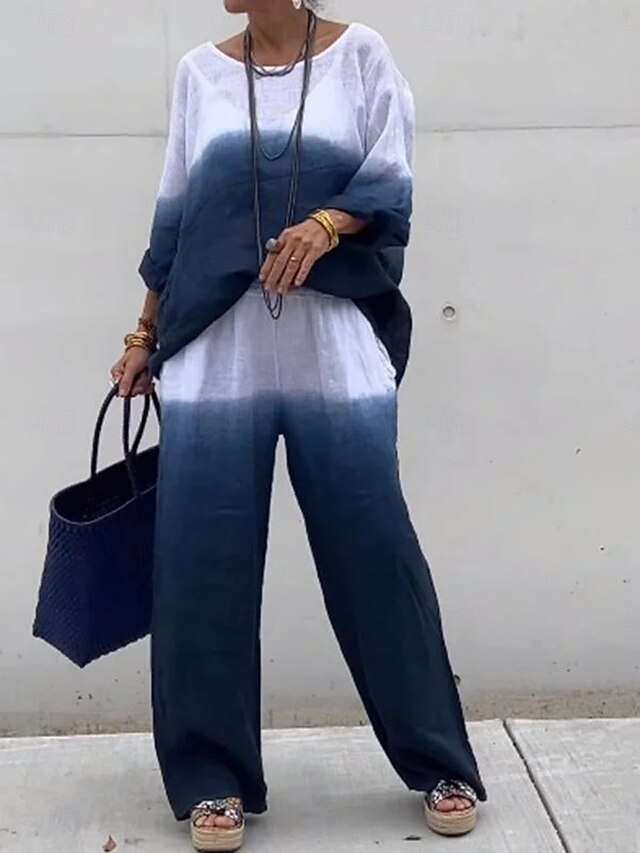More information about Women's Fashion Streetwear Daily Shirt Wide Leg Pants Long Sleeve Crew Neck Ombre Drawstring Casual Daily Dark Navy Sky Blue Brown Summer Regular Fit