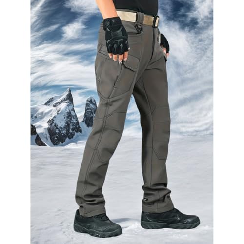 Fleece Lined Cargo Pants for Men Winter Windproof Work Pants with Pockets for Outdoor Hiking Hunting Tactical Pants 5