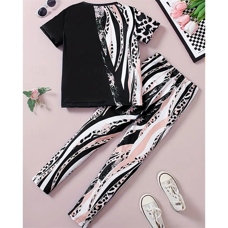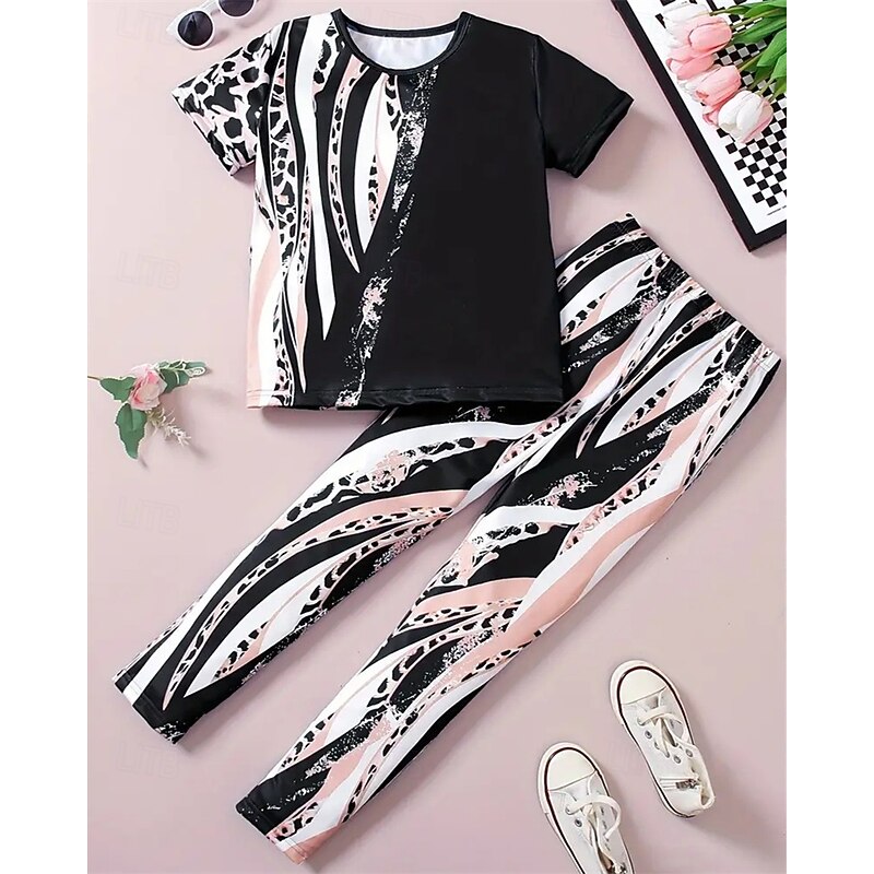 HOT ! Girls' 3D Print Pajama Sets Tee & Pants Pajama Sets Short Sleeve 3D Print Summer Spring Active Basic Kids 4 years+ Crew Neck Home Daily Regular Fit