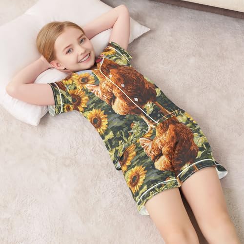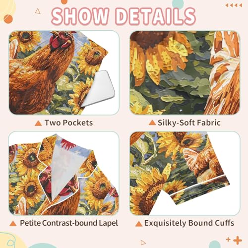ALAZA Retro Chicken Sunflower Blossom Satin Pajamas Set Short Sleeve Button Down Sleepwear Summer Pjs 2 Piece 7