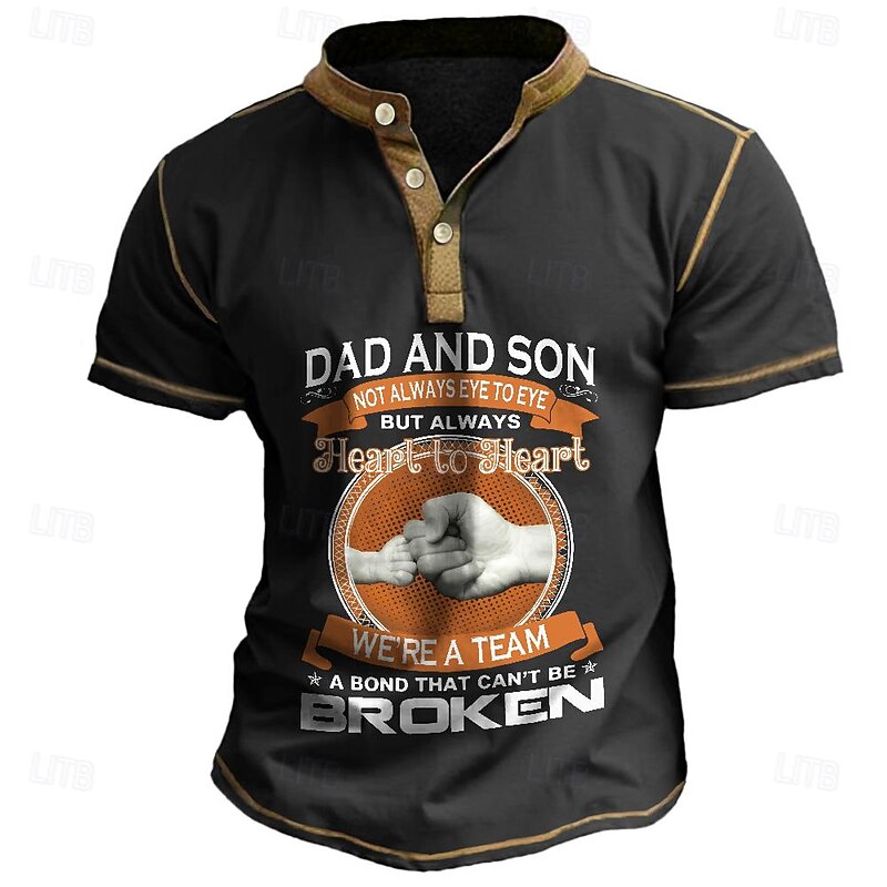More information about Men's Graphic Letters T Shirt Henley Shirt Papa T Shirt Short Sleeve 3D Print Retro Vintage Casual Sports Outdoor Daily Holiday Spring & Summer Black Blue Green Henley Henley T-Shirt