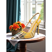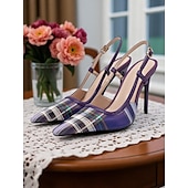 More information about Women's Green Plaid Slingback Stiletto Heels – Retro Tartan Pointed Toe High Heels for Spring Parties, Afternoon Teas, and Vintage-Inspired Looks