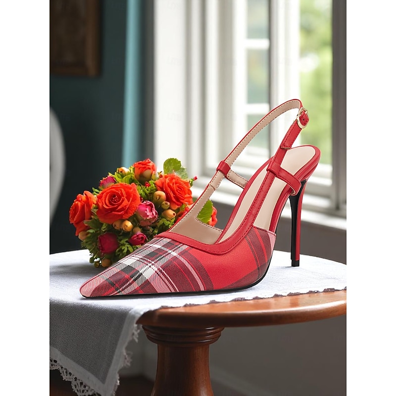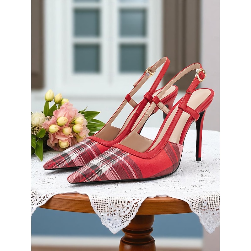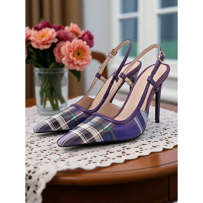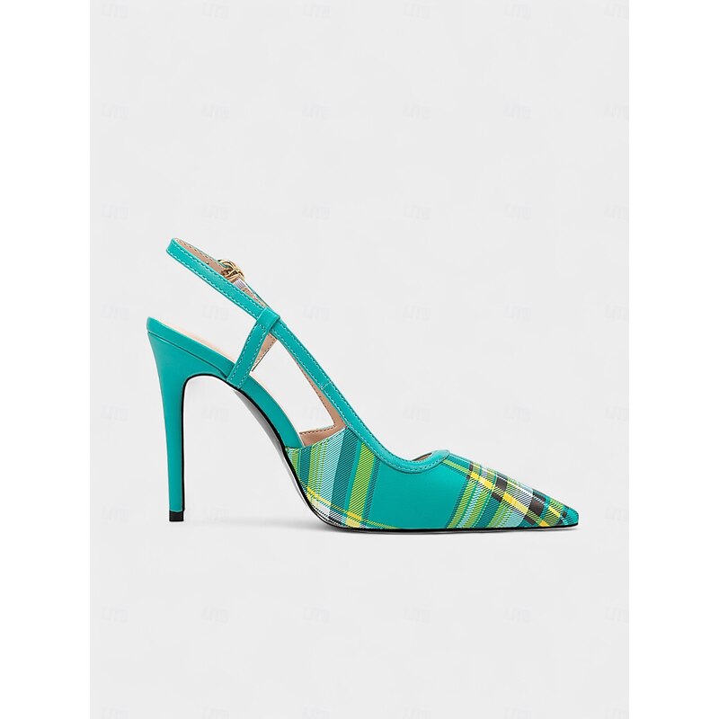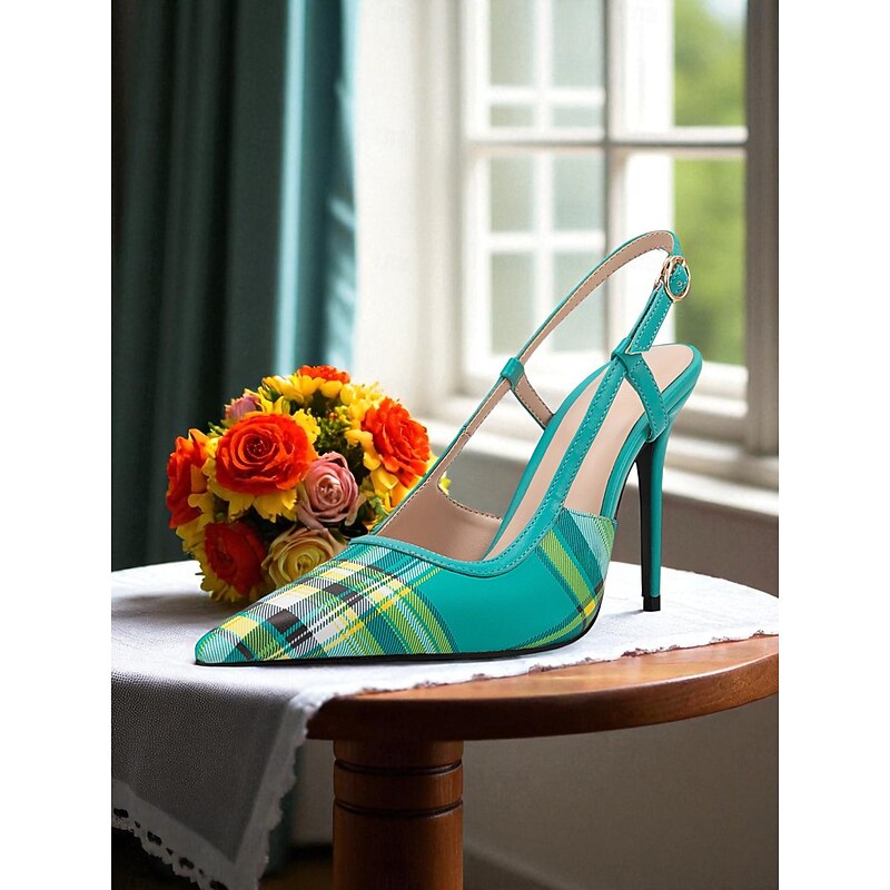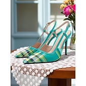 HOT ! Women's Green Plaid Slingback Stiletto Heels – Retro Tartan Pointed Toe High Heels for Spring Parties, Afternoon Teas, and Vintage-Inspired Looks
