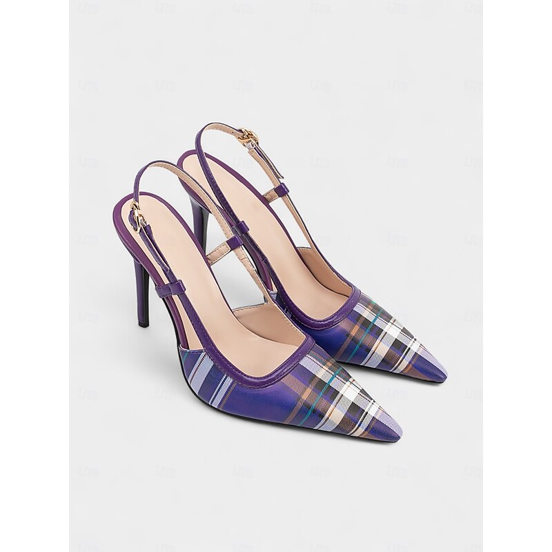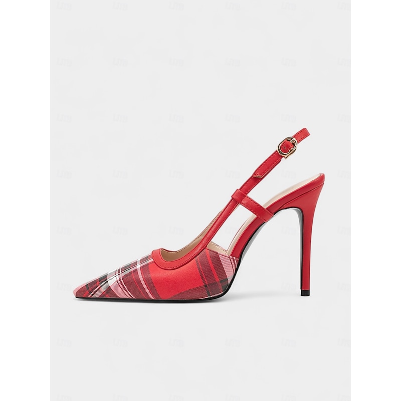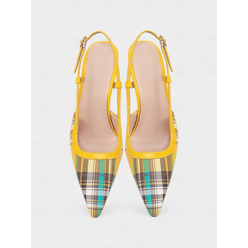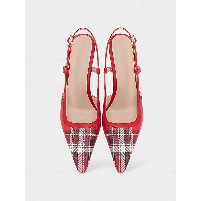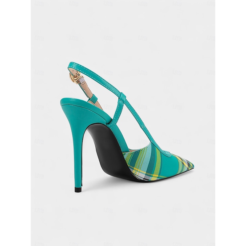 Women's Green Plaid Slingback Stiletto Heels – Retro Tartan Pointed Toe High Heels for Spring Parties, Afternoon Teas, and Vintage-Inspired Looks 20