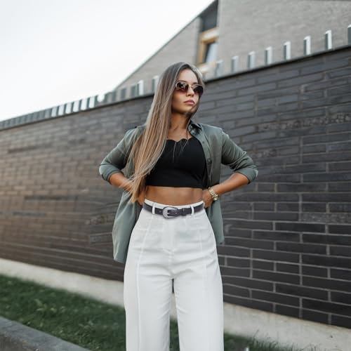 • Antique silver buckle:This sophisticated leather belt accented with eye-catching silver-tone metal hardware. Its vintage charm and minimal design make the western belt an ideal complement to both casual and formal outfits, enhancing your silhouette with its western statement.