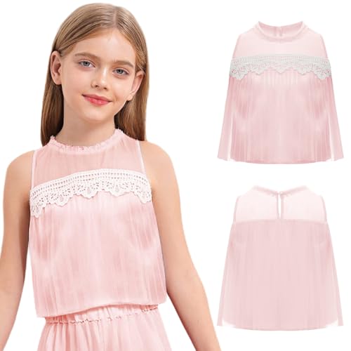 YiZYiF Kids Girls' Lace Cropped Tank Top Summer Blouse Sleeveless Crew Neck Tee 7