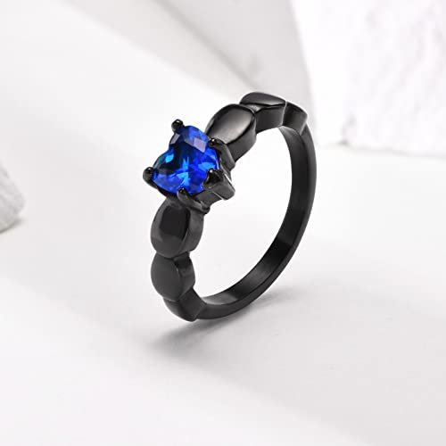 Personalized Black and Blue Wedding Rings Set for Him and Her Matching Promise Rings for Couples Engraved Name Rings for Couples Womens Blue Sapphire & Cubic Zirconia Ring 5