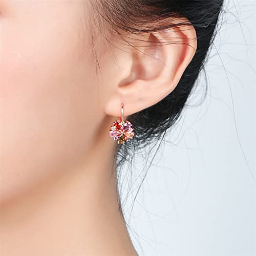 14K Rose Gold Huggie Stud Earrings for Women Gold Hoop Earrings Multicolored Crystal Elements Fashion Bridal Jewelry 6