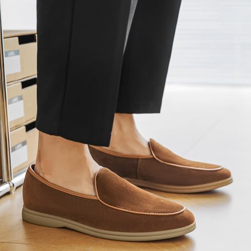 • 【Fashion Style】This pair of men's suede leather slip on penny loafers is solid color simple style, and every detail is carefully carved to show unparalleled exquisiteness. The classic design concept combines modern trend elements, allowing you to stand out in business occasions and become the focus of everyone's attention.