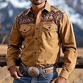 More information about Men's Ethnic Western Shirt Cowboy Shirt Long Sleeve Western Style Sport Casual Spring Fall Turndown Button Up Brown