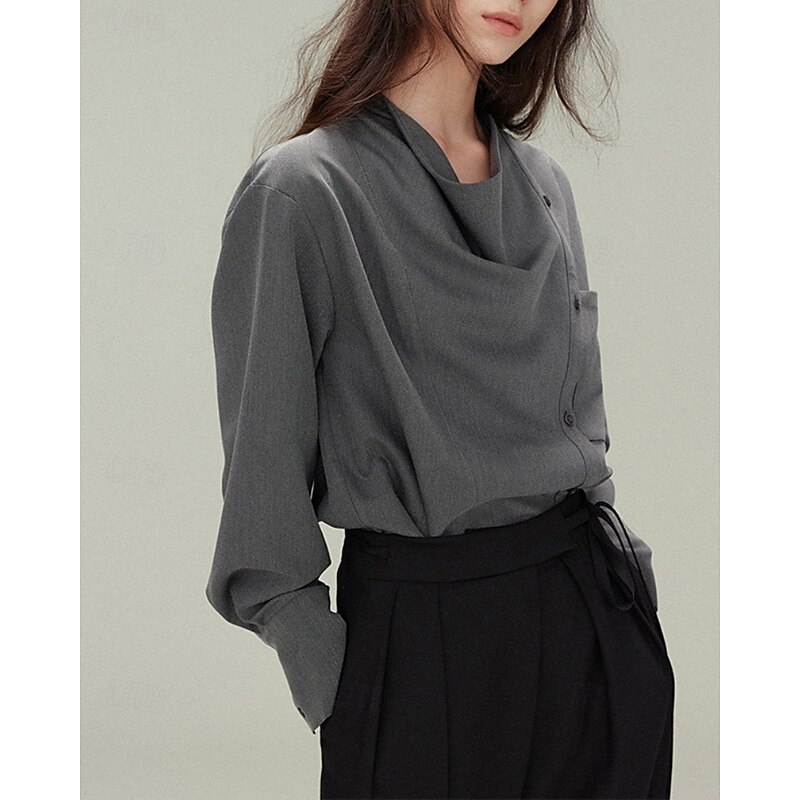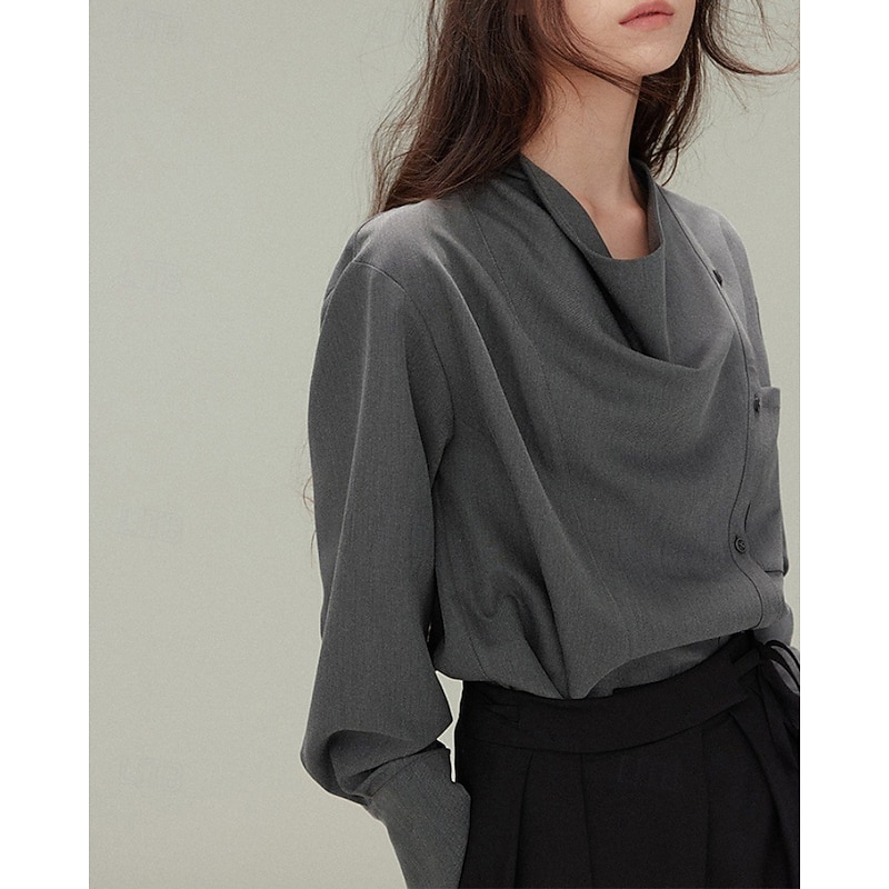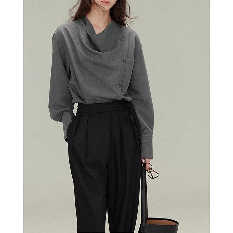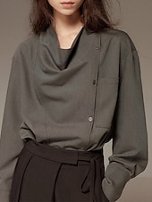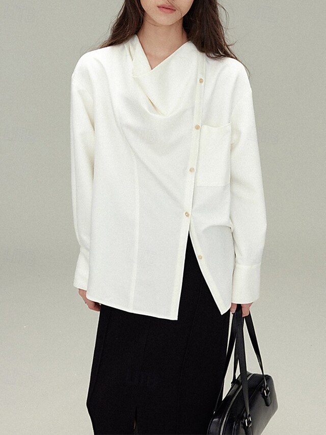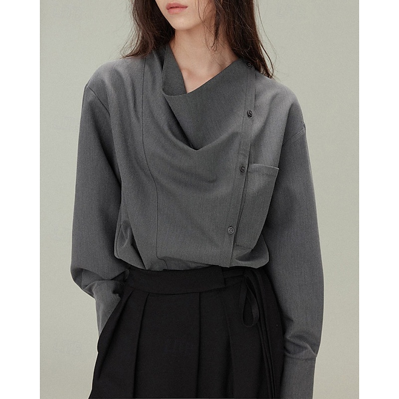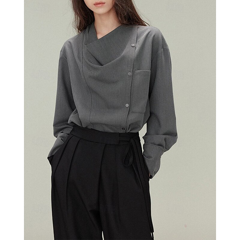 More information about Women's Shirt Blouse Plain Elegant Vintage Long Sleeve Asymmetrical Regular Tops Holiday Going out Buttons White Gray Spring Fall