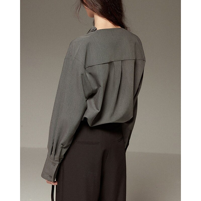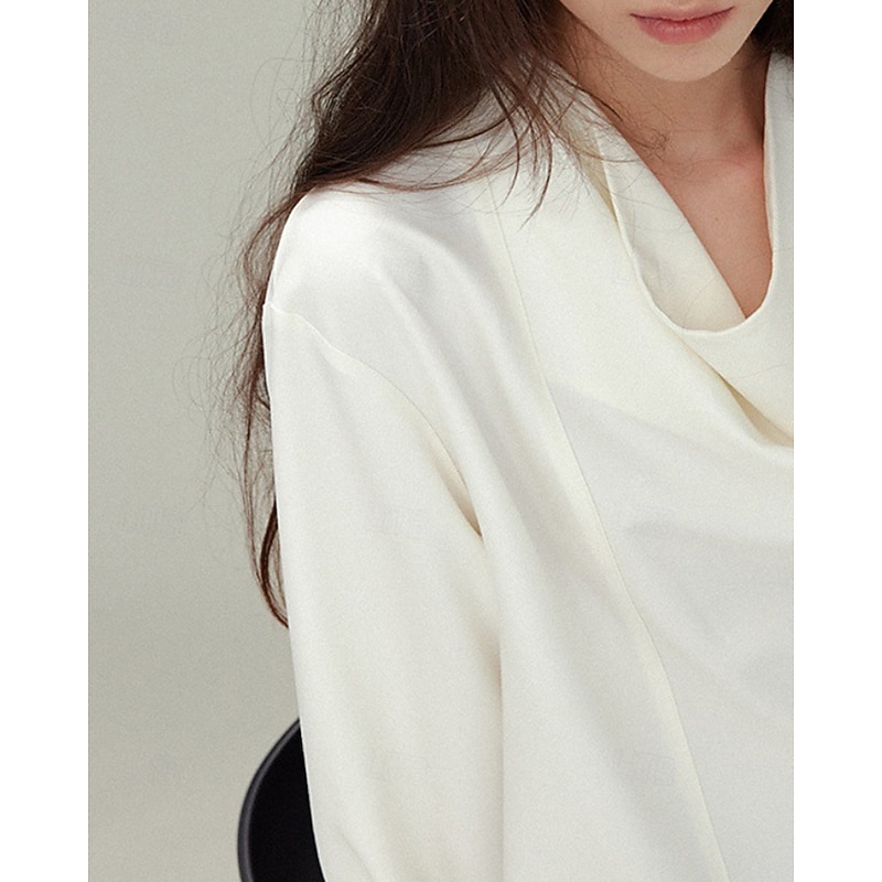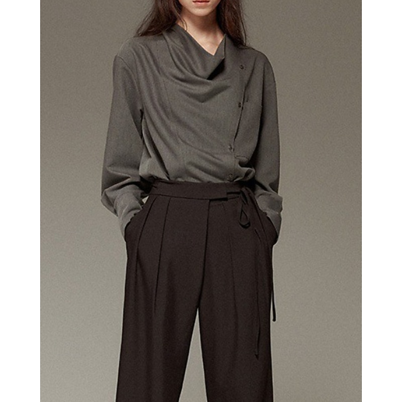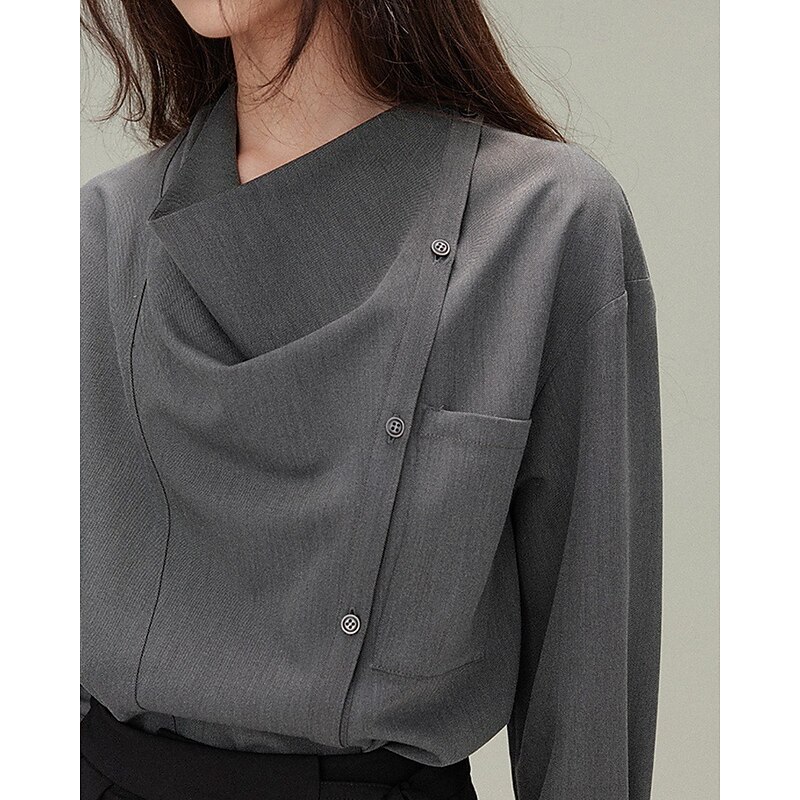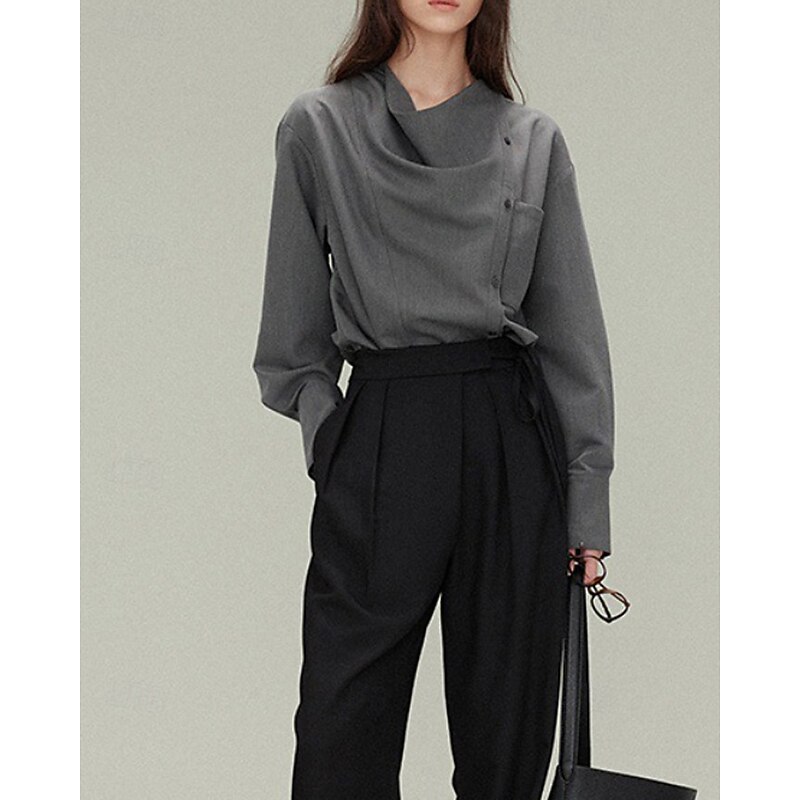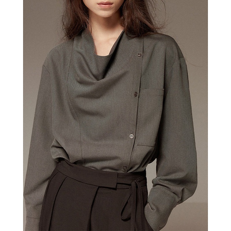 More information about Women's Shirt Blouse Plain Elegant Vintage Long Sleeve Asymmetrical Regular Tops Holiday Going out Buttons White Gray Spring Fall