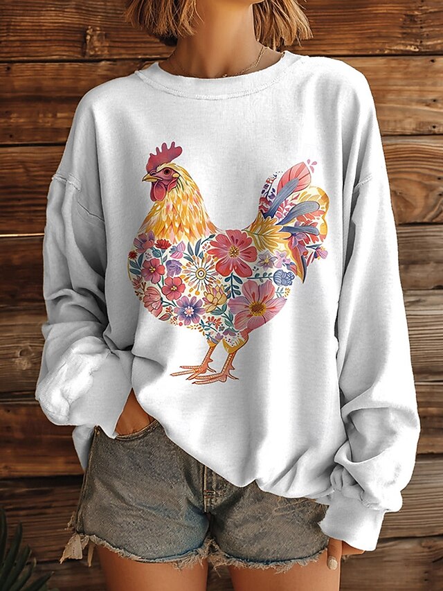 More information about Women's Sweatshirts Graphic Animal Casual Long Sleeve Crew Neck Regular Tops Street Dailywear Casual Print White Khaki Dark Blue Beige Fall Winter