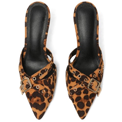 Mules Heels for Women Studded Closed Pointed Toe Backless Kitten Pumps Wide Sexy Prom Wedding Casual Dress Shoes 1