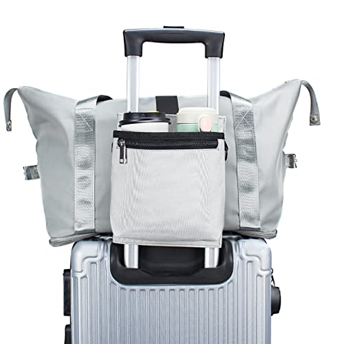 HOT ! Luggage Travel Cup Holder with Luggage Straps Free Hand Drink Caddy Beverage Holder Travel Accessories Gift for Flight Attendants Businessmen Travelers Fits Roll on Suitcase Handles Light Grey