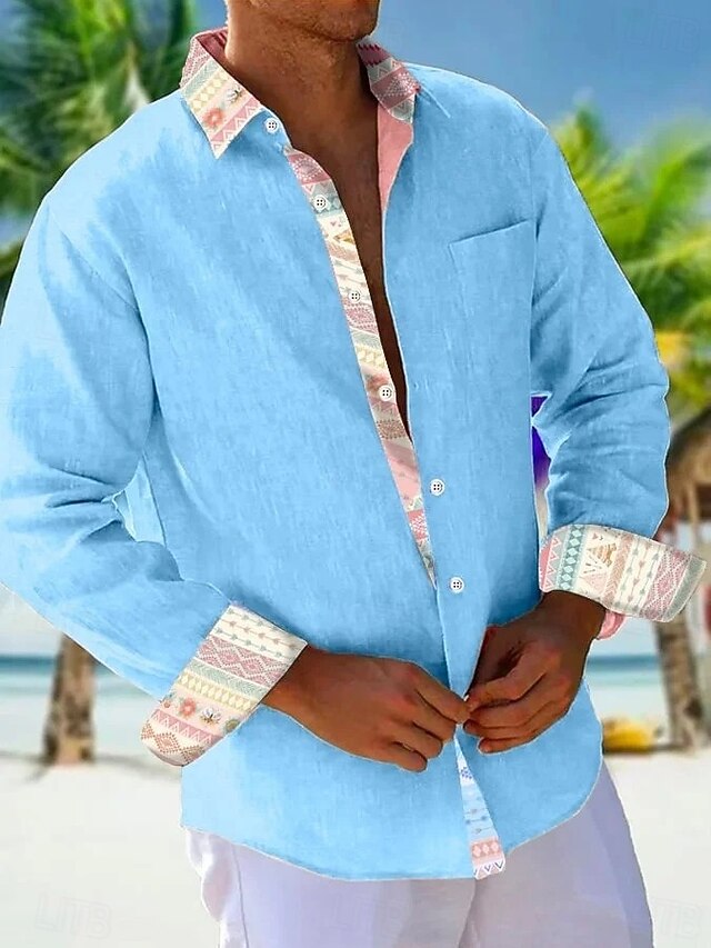 More information about Men's Shirt Summer Shirt Casual Shirt Beach Shirt Button Up Shirt White Pink Sky Blue Orange Long Sleeve Plain Pattern Lapel Vacation Hawaiian Button-Down Clothing Apparel Polyester Fashion Casual