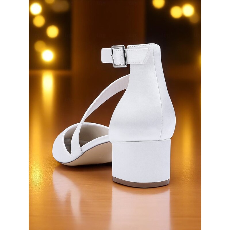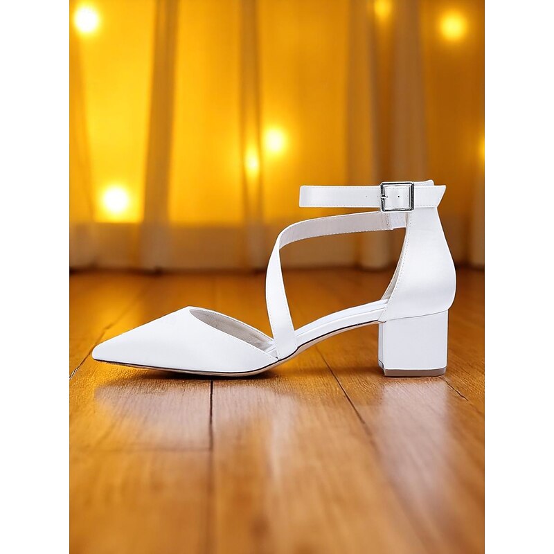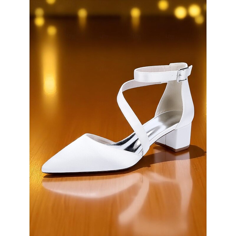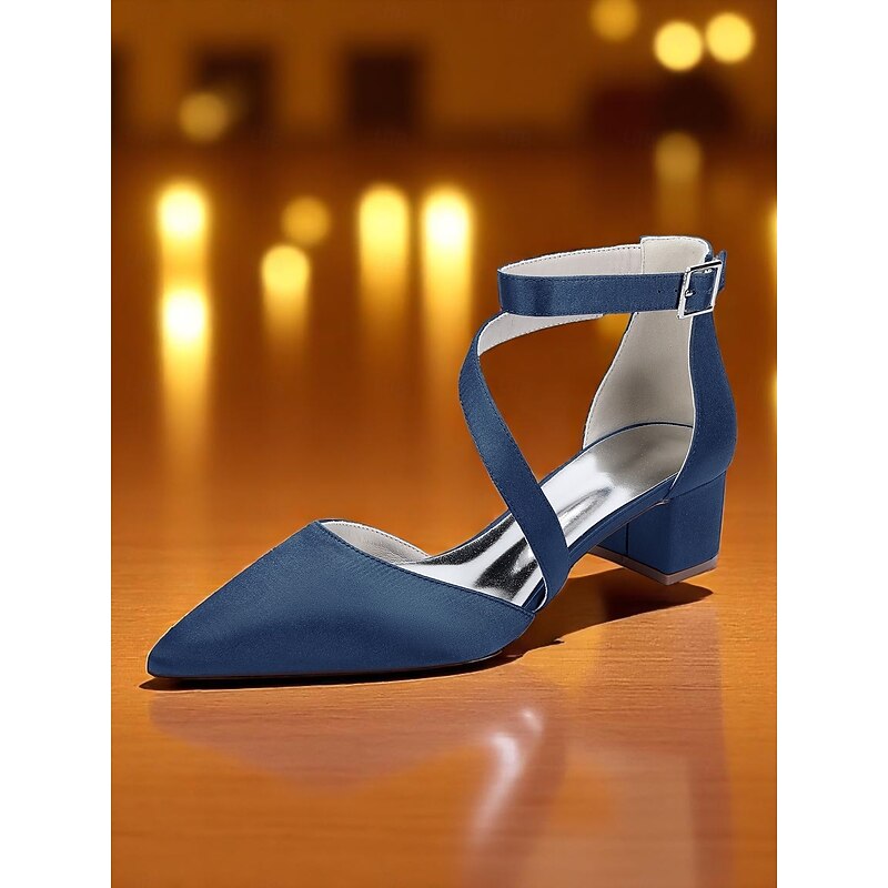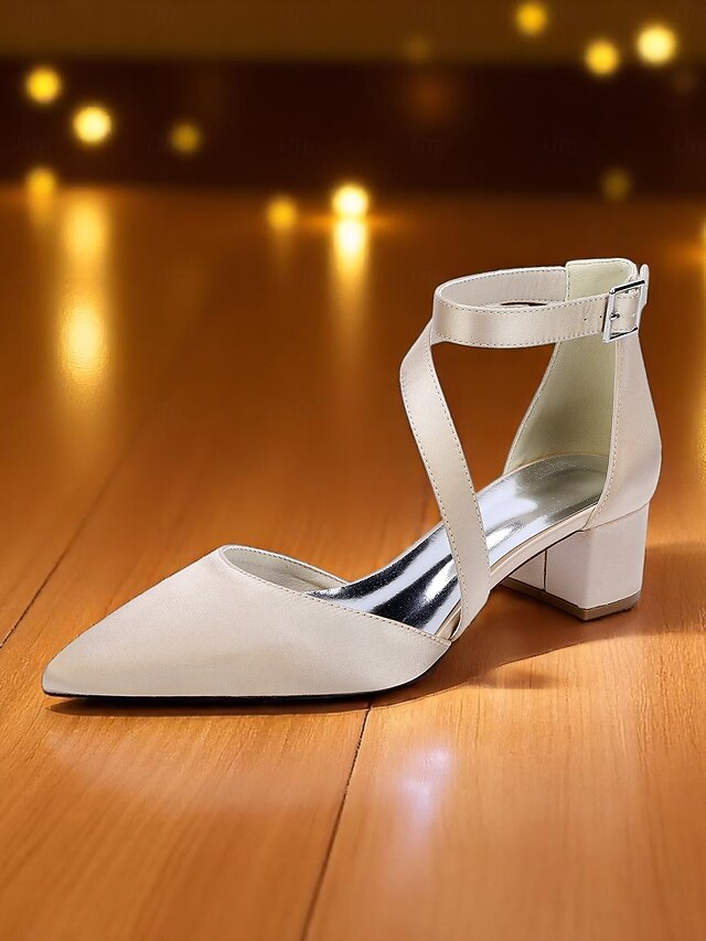 More information about Women's Champagne Satin Block Heels - Pointed Toe Cross-Strap Dress Shoes with Ankle Buckle for Cocktail Parties and Semi-Formal Evenings