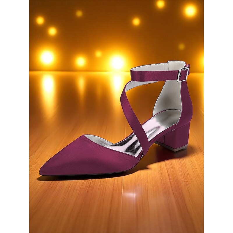 Highlights - Luxurious satin upper materials for a sophisticated look - High-quality synthetic leather lining for comfort and durability - Chunky heel for a stylish and stable strut - Pointed toe shape for a sleek and modern touch - Durable rubber outsole for long-lasting wear