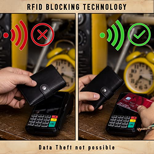 TRUSADOR Venice Men & Women Leather Trifold Wallets RFID Blocking Front Pocket Wallet (Black, Card Holder) 5