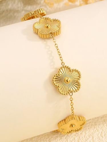 • LUXURIOUS SET: Four-piece bracelet set featuring a floral charm bracelet, crystal tennis bracelet, twisted cable bangle, and rhinestone-accented bangle in elegant gold-plated finish