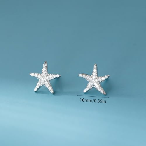 HOT ! 925 Sterling Silver Starfish Stud Earrings for Women Gold CZ Rhinestone Dainty Beach Earrings for Women Hypoallergenic Minimalist Tiny Summer Ocean Jewelry Gifts