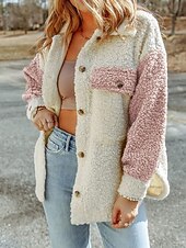More information about Women's Teddy Coat Hoodie Jacket Warm Breathable Pocket Fleece Lined Casual Plain Vacation Street Daily Wear Going out Single Breasted Regular Turndown Regular Fit Long Sleeve Outerwear Pink Brown