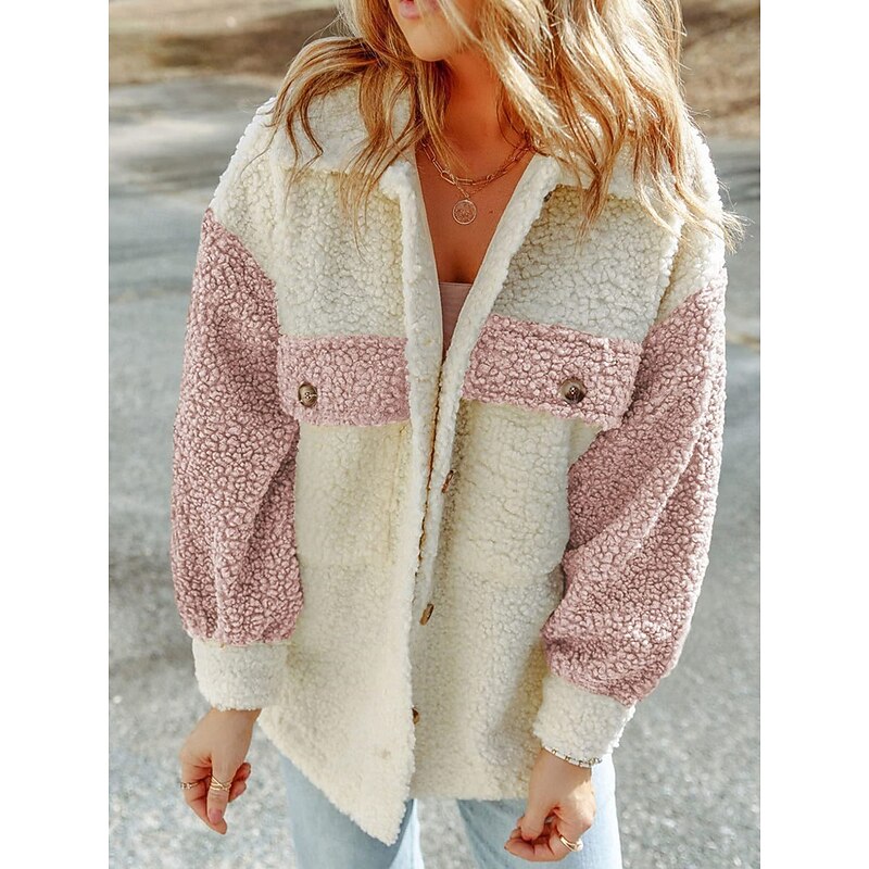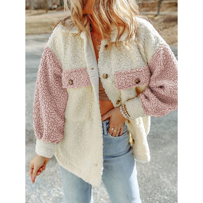 HOT ! Women's Teddy Coat Hoodie Jacket Warm Breathable Pocket Fleece Lined Casual Plain Vacation Street Daily Wear Going out Single Breasted Regular Turndown Regular Fit Long Sleeve Outerwear Pink Brown