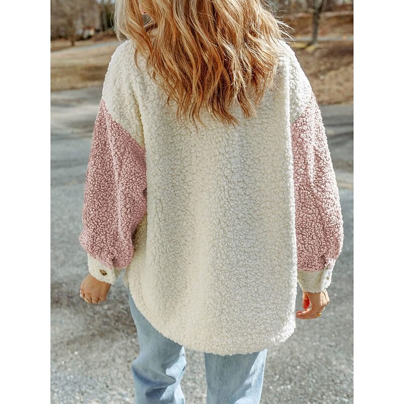 Women's Teddy Coat Hoodie Jacket Warm Breathable Pocket Fleece Lined Casual Plain Vacation Street Daily Wear Going out Single Breasted Regular Turndown Regular Fit Long Sleeve Outerwear Pink Brown 16