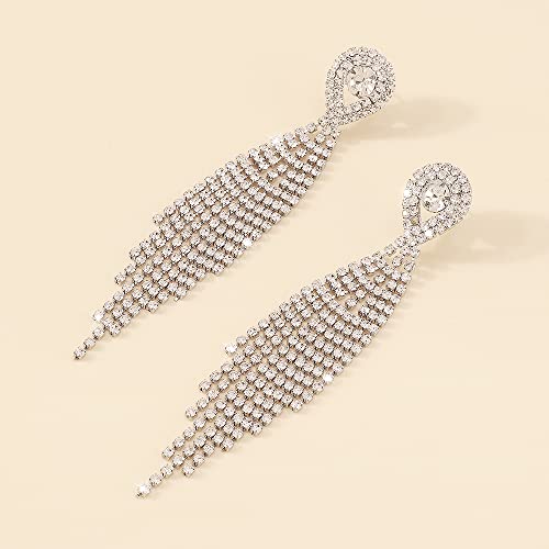 HOT ! Denifery Teardrop Crystal Chandelier Earrings Long Tassels Dangle Earrings Sparkling Rhinestone Ladies Gifts Statement Earrings Bridal Wedding (Silver)