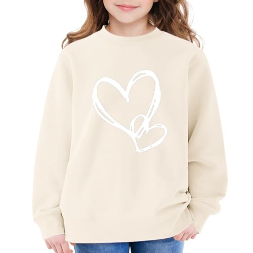 HOT ! Girls Crewneck Sweatshirt Kids Cute Heart Print Tee Tops Casual Comfy Loose Fit Pullover Tops Long Sleeve Graphic Outfits