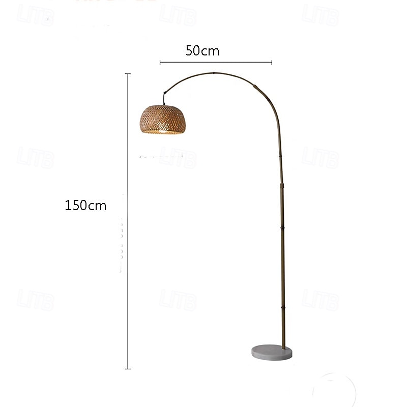 HOT ! Floor Lamp Bedside Floor Lamp Bamboo Style Standing Light with Arc Arm in Wood Wabi-Sabi Style Floor Lamp