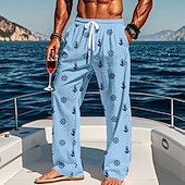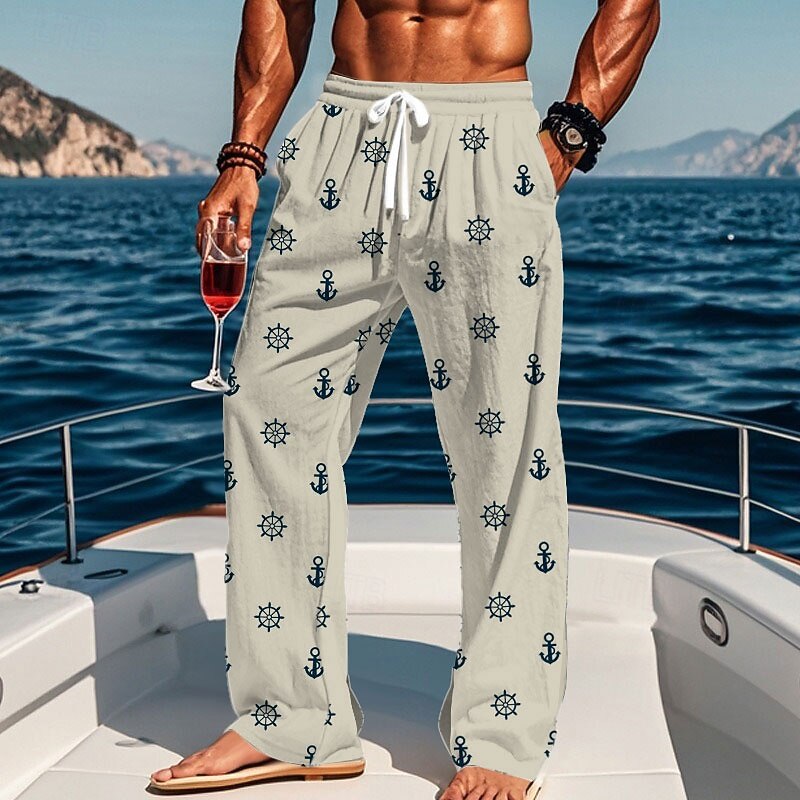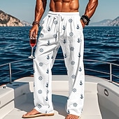 More information about Men's Nautical Anchor Compass Pants Trousers Casual Pants Mid Waist Drawstring Elastic Waist Hawaiian Casual Outdoor Vacation Holiday Straight Leg Trousers Summer Spring Fall 3D Print White Blue khaki