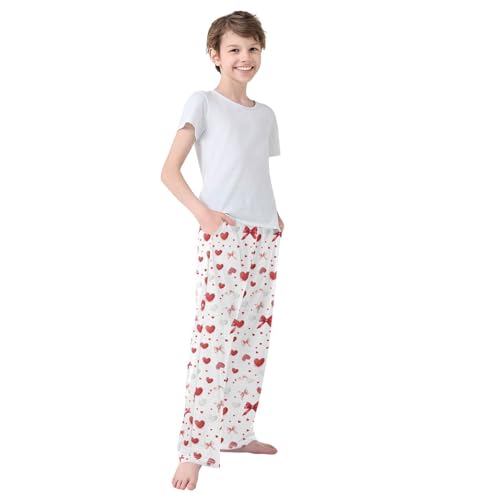 Pajama Bottoms, Pattern Of Red Heart and Bow Sleeping Pant Lounge Wear Elastic Waist Long Pants Sleepwear Pjs 6