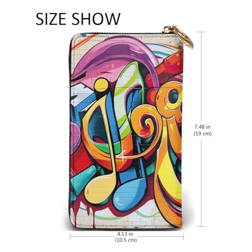 Music Graffiti Style Printed Long Wallet for Women Men Cute PU Leather Wallet with Coin Purse and Credit Card Holder 1