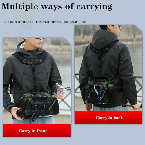 Chest Bag, Waterproof Fishing Backpack with Rod Holder, Adjustable Shoulder Straps, Multiple Storage Pockets(B) 6