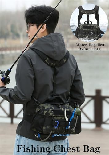 Chest Bag, Waterproof Fishing Backpack with Rod Holder, Adjustable Shoulder Straps, Multiple Storage Pockets(B) 5