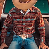 More information about Men's Color Block Geometry Shirt Western Shirt Cowboy Shirt Long Sleeve Vintage Western Style Daily Wear Going out Weekend Fall & Winter Turndown Print Button-Down Burgundy Brown