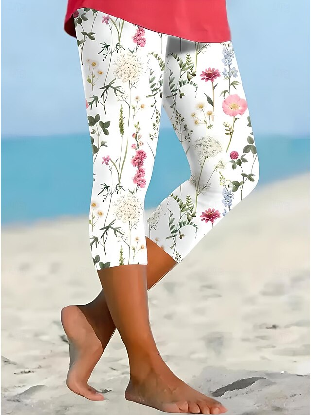 Women's Leggings Capri Pants High Elasticity Vacation Fashion Hawaiian Ankle-Length Mid Waist Floral Graphic Printing Thermal Warm Breathable Soft  Vacation Casual Daily 10