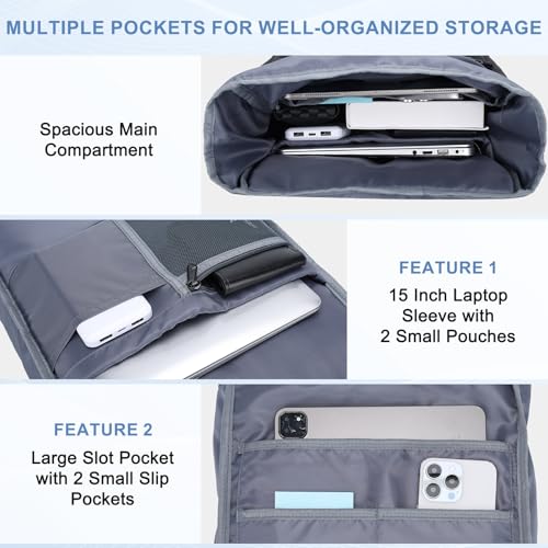 VX VONXURY Roll Top Backpack for Women,15.6 inch Laptop Backpack for Men,Top Open Casual Daypack for Work Travel 6