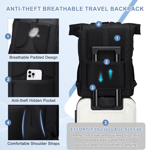 VX VONXURY Roll Top Backpack for Women,15.6 inch Laptop Backpack for Men,Top Open Casual Daypack for Work Travel 4