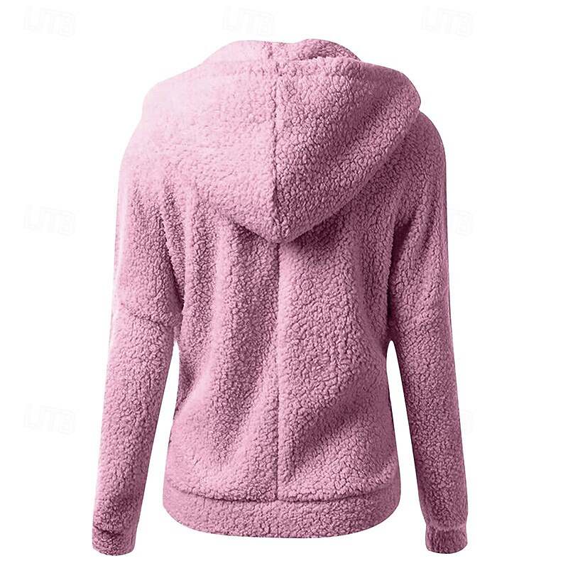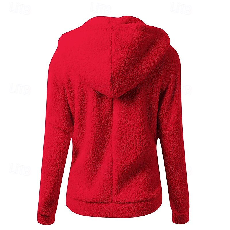 More information about Women's Zip Up Jacket Sherpa Sweatshirt Hooded Long Sleeve Top Athleisure Solid Colored Warm Casual Cycling Running Sportswear Activewear Pink Red Blue