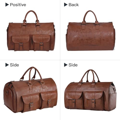 More information about Snap on zipper suit suit travel bag carry on overnight bag waterproof leather duffel bag men and women convertible garment bag sports bag two-in-one hanging suitcase (Leather, brown), PG001