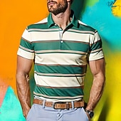 More information about Men's Stripes Rugby Polo Shirts Short Sleeve Polo Shirts Lapel 3D Print Modern Comfortable Work Casual Sports Holiday Buttons Summer Spring Red Green