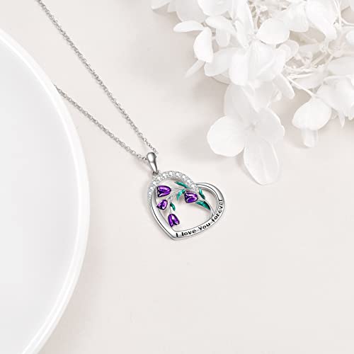 CRMAD Purple Tulips Necklace Sterling Silver Moonstone/Crystal/Cross Flower Tulips Jewelry Mother's Day Gifts 4