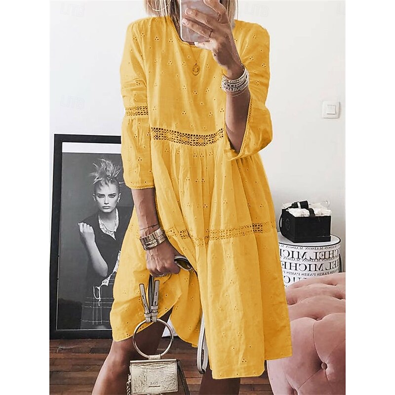 HOT ! Women's Long Dress Maxi Dress Cotton Linen Dresses Casual Dress Elegant Stylish Basic Vacation Daily Loose Fit Plain 3/4 Length Sleeve Crew Neck White Yellow Blue Purple Summer Spring Fall