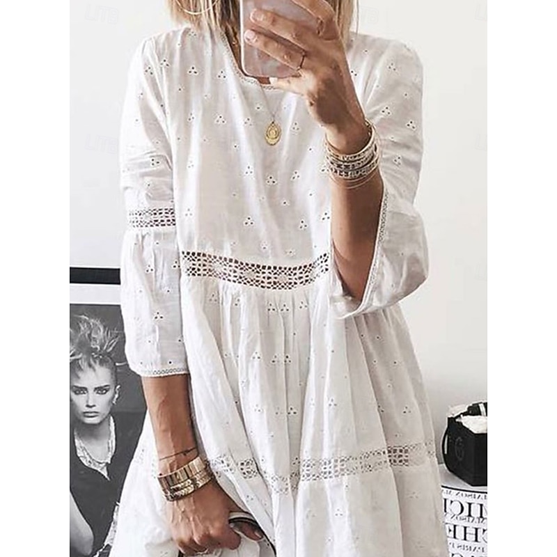 More information about Women's Long Dress Maxi Dress Cotton Linen Dresses Casual Dress Elegant Stylish Basic Vacation Daily Loose Fit Plain 3/4 Length Sleeve Crew Neck White Yellow Blue Purple Summer Spring Fall