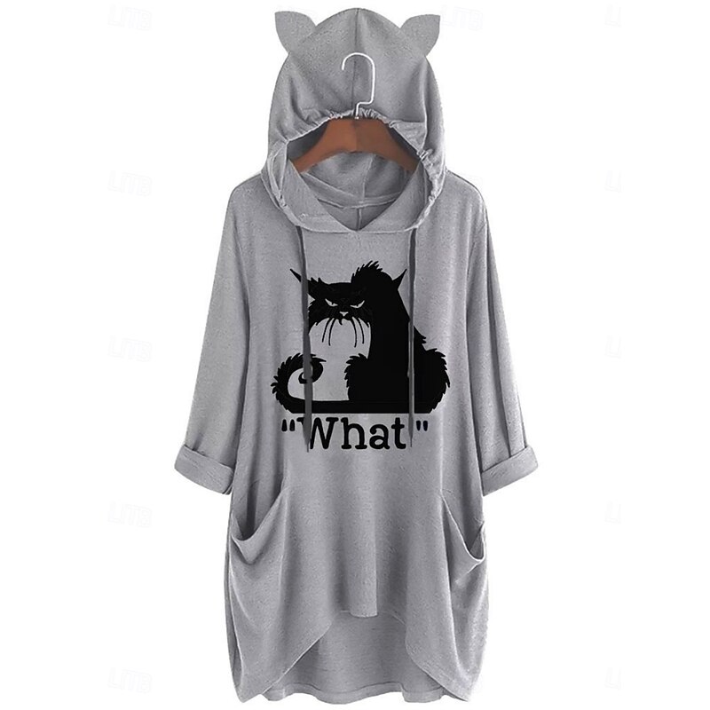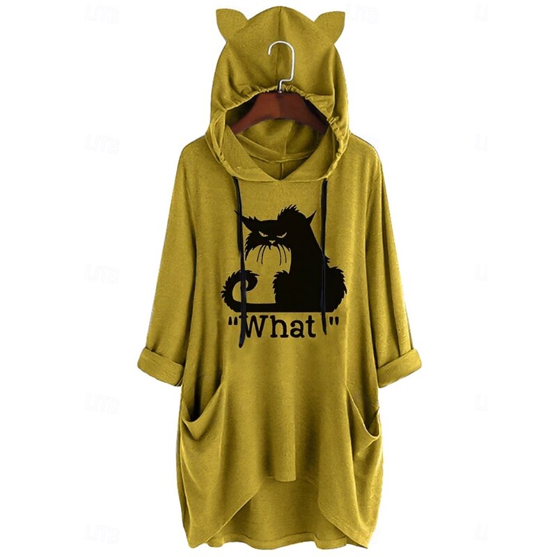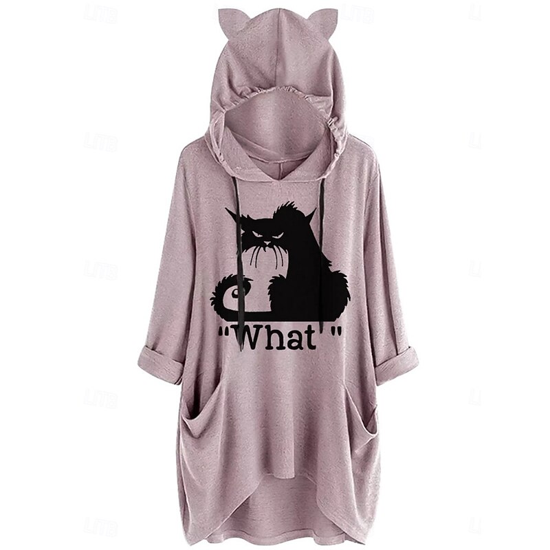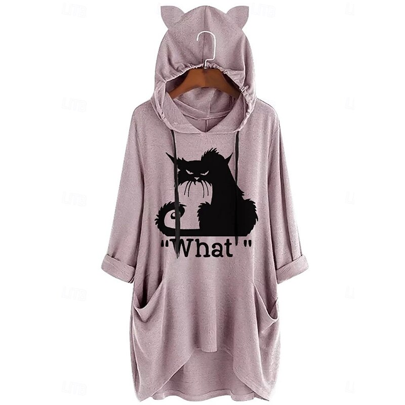 Highlights Stay warm and stylish this winter with our women's polyester hoodie. The loose fit design with a trendy print is perfect for all body types and the hooded neckline adds a touch of chic to any outfit.